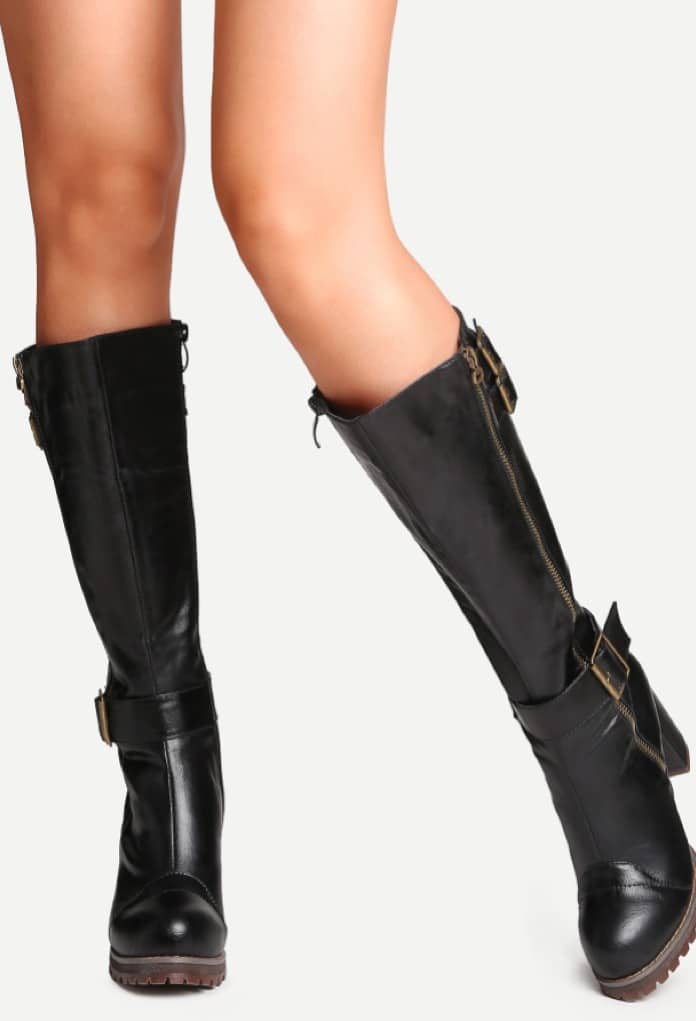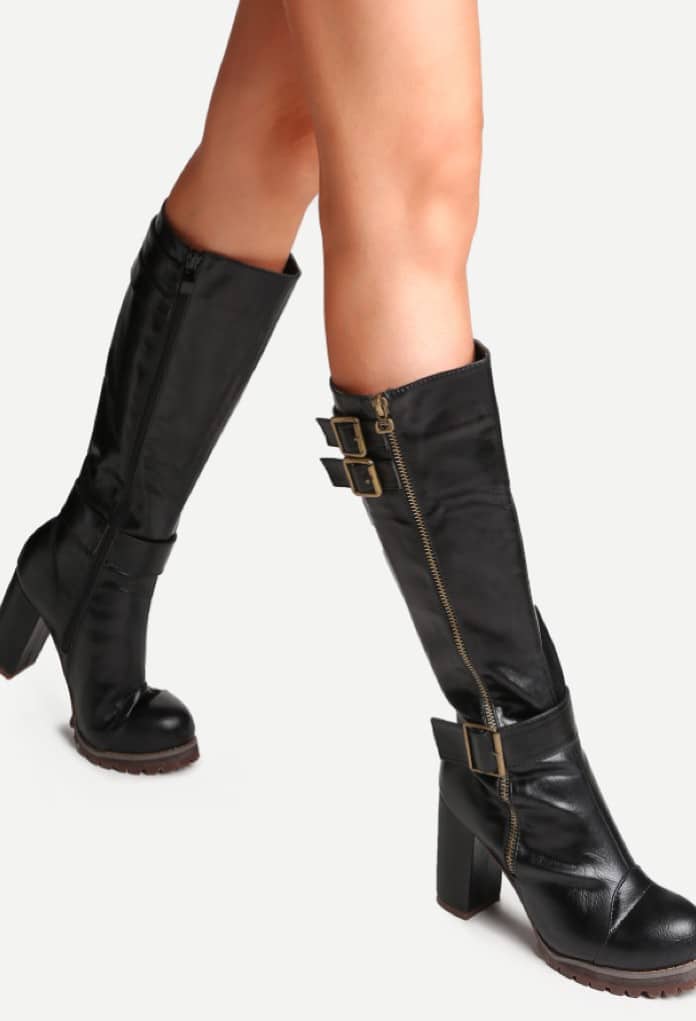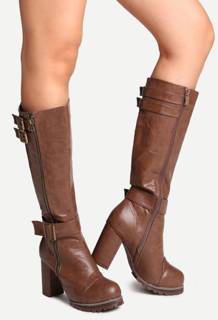 Bottines marron à talon en cuir avec bout rond avec boucle, de la marque Shein