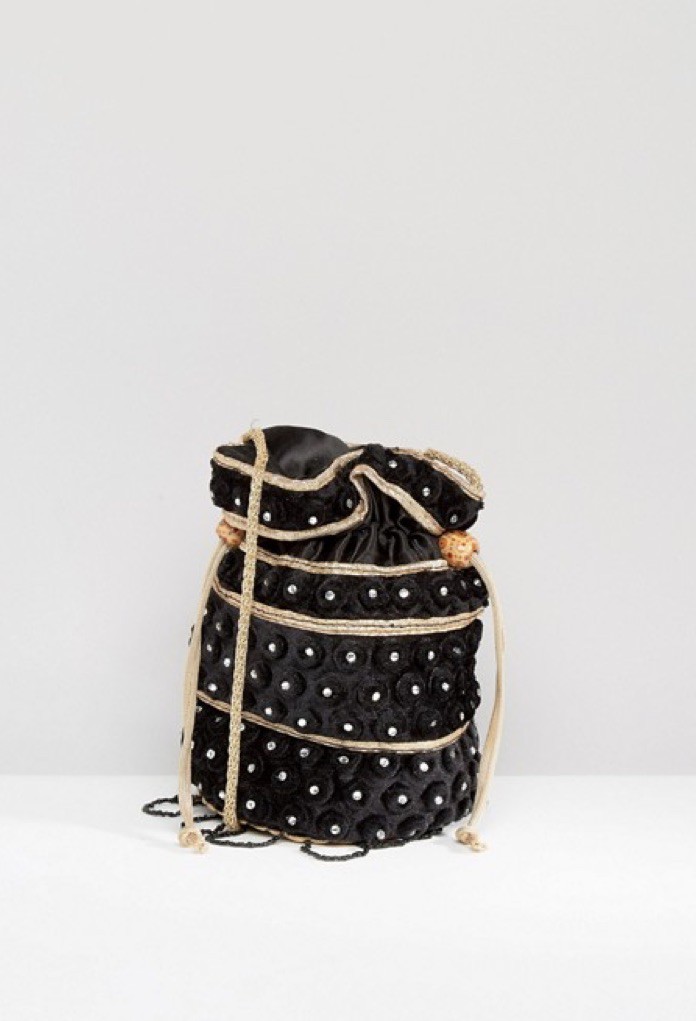 Mini sac boule orné de perles en velours, de la marque Reclaimed Vintage.