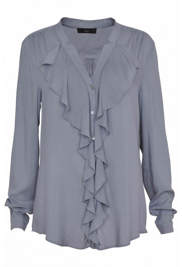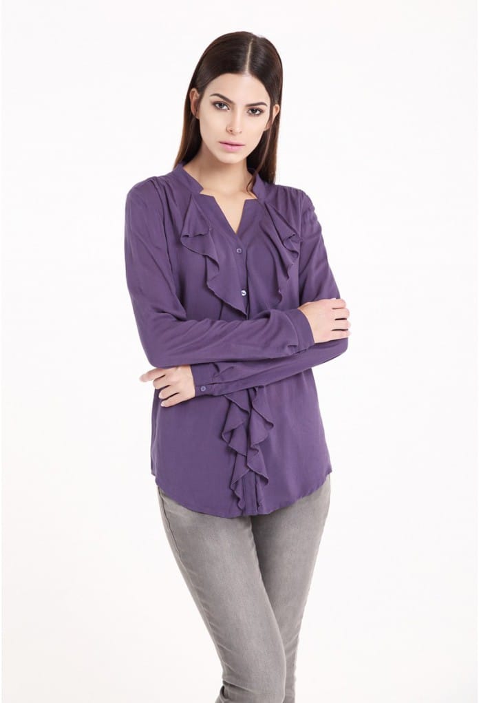 Chemisier à manches longues avec un col V en jabot.