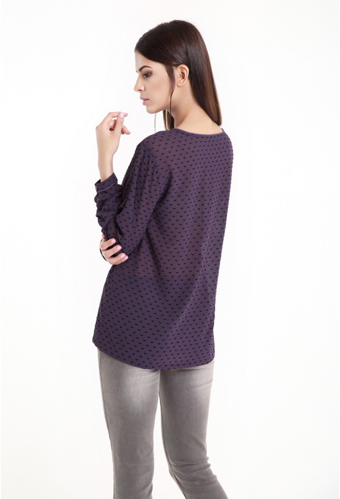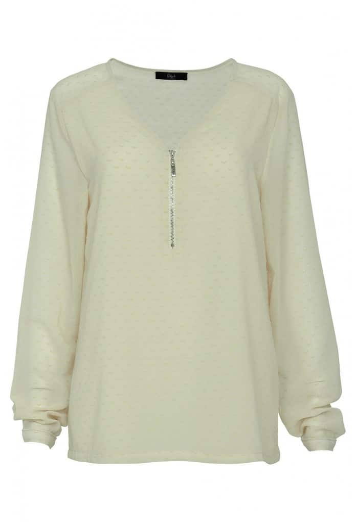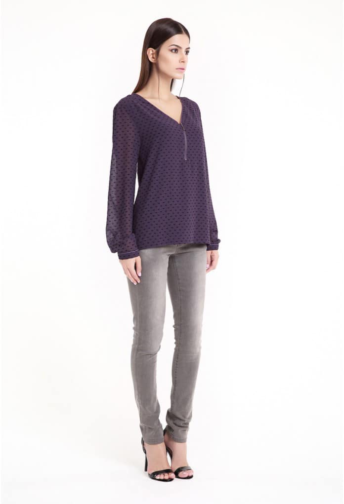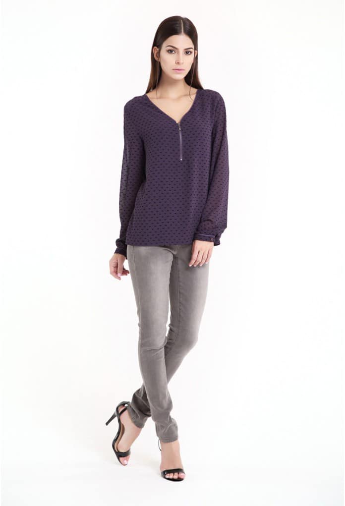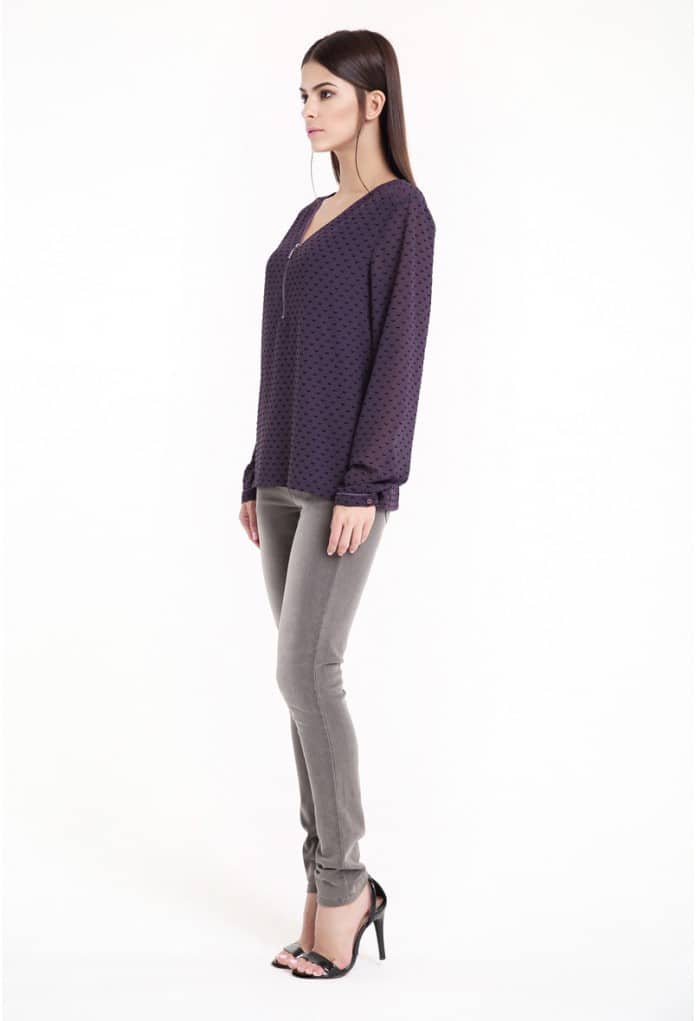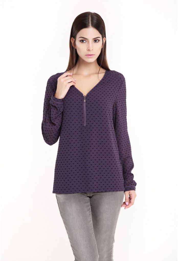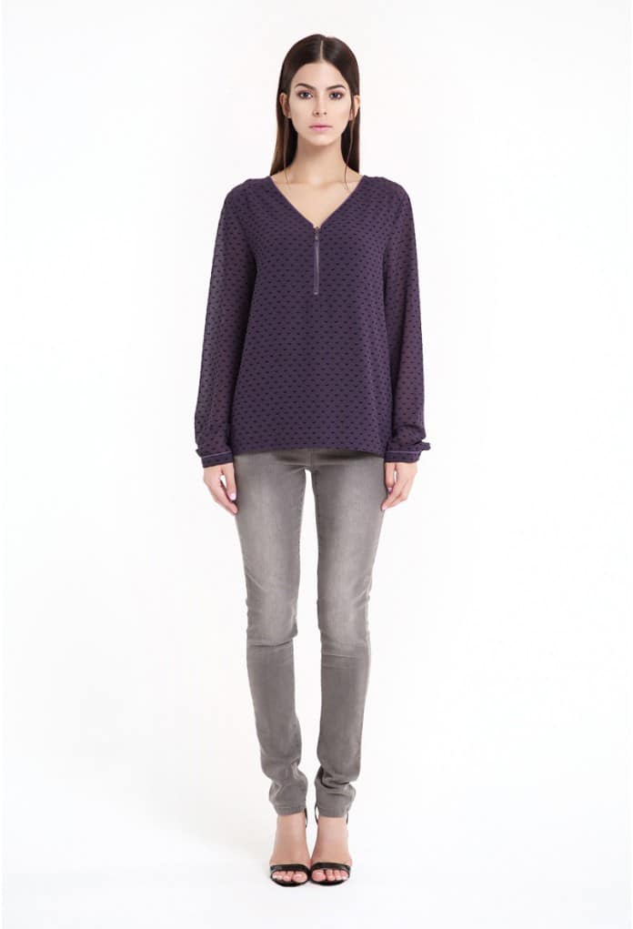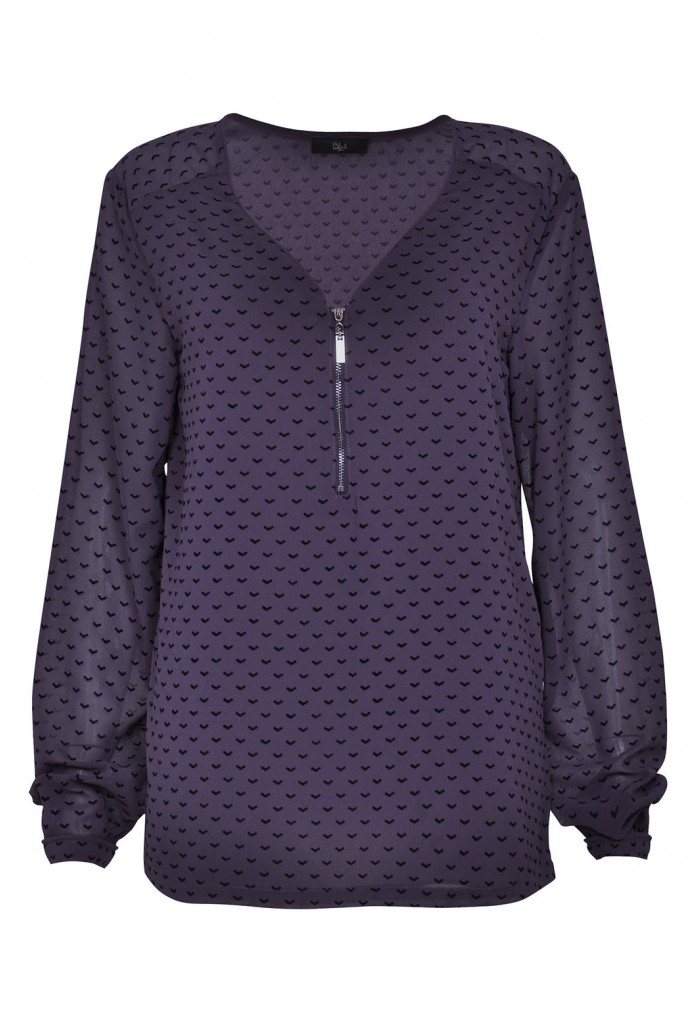 Chemisier imprimé velours avec un col V zippé, à manches longues.