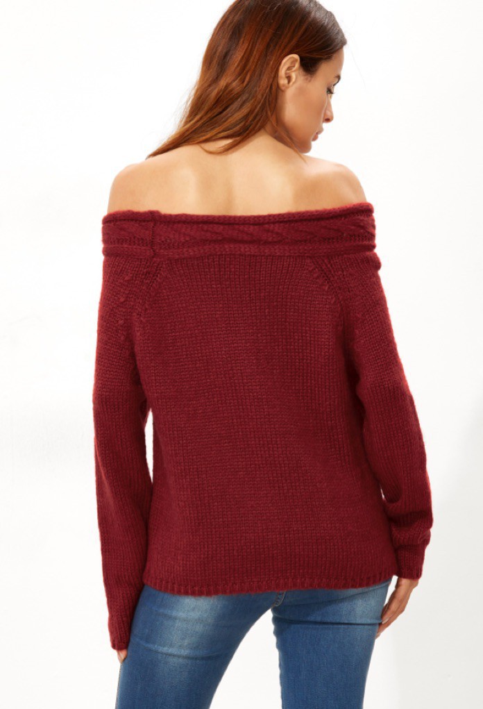 Ce pull existe en violet, gris, rouge foncé ou noir.