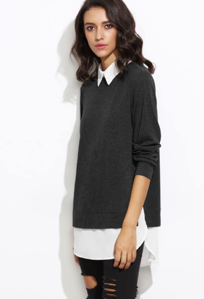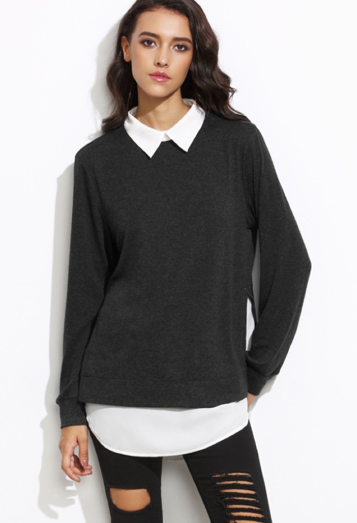 Ensemble sweat-shirt col à revers manche longue, de la marque Shein