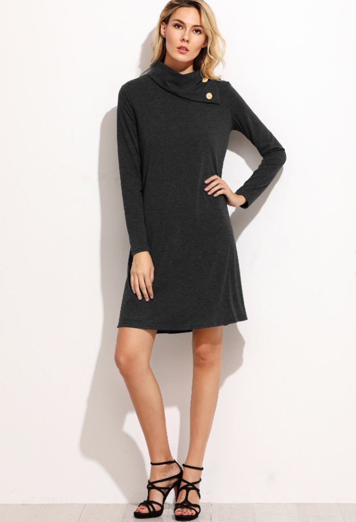 Robe courte Buttoned avec col roulé, de la marque Shein.